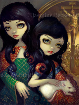 Jasmine Becket-Griffith, a menina que pinta tudo isso. Ela é uma artista independente.Pintar é o trabalho dela o tempo inteiro, ela vem fazendo isso desde 1997. Tem 30 anos, mora em Celebration, Flórida, com meu marido Matt. - Ele trabalha para ela como assistente.